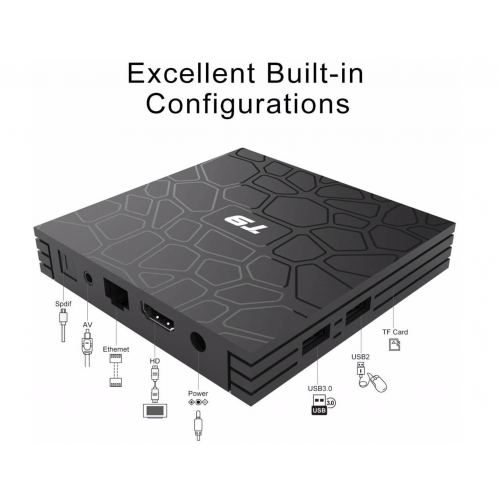 - 【HIGH REACTION SPEED】 T9 Android TV box provides plentiful room 2GB RAM 16 GB ROM and RK3318 Quad-core CPU to quickly start your apps and games. You can also add an extra TF card to expand storage. Also, the transmission of USB 3.0 is 10 times faster than USB 2.0. It can transfer large capacity files at storage rates defined by storage devices, and optimize the machine to reduce energy consumption.