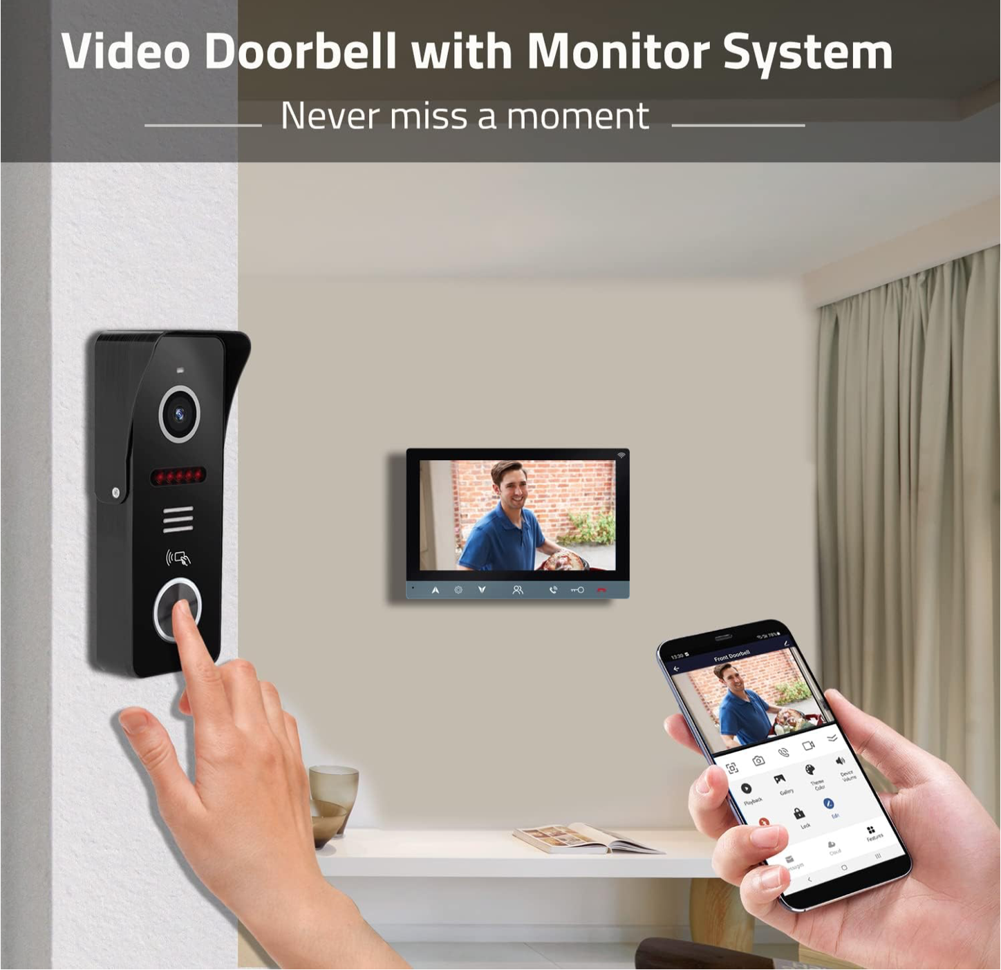 【Wifi Connection 】Please note the wifi video intercom system does not mean you don’t need wire any cable.The monitor support WIFI network,but the indoor monitor and doorbell is Wired. you can extend longer distance. (support about 300ft distance). You can talk to visitors or couriers open the door, at any time, wherever you are.