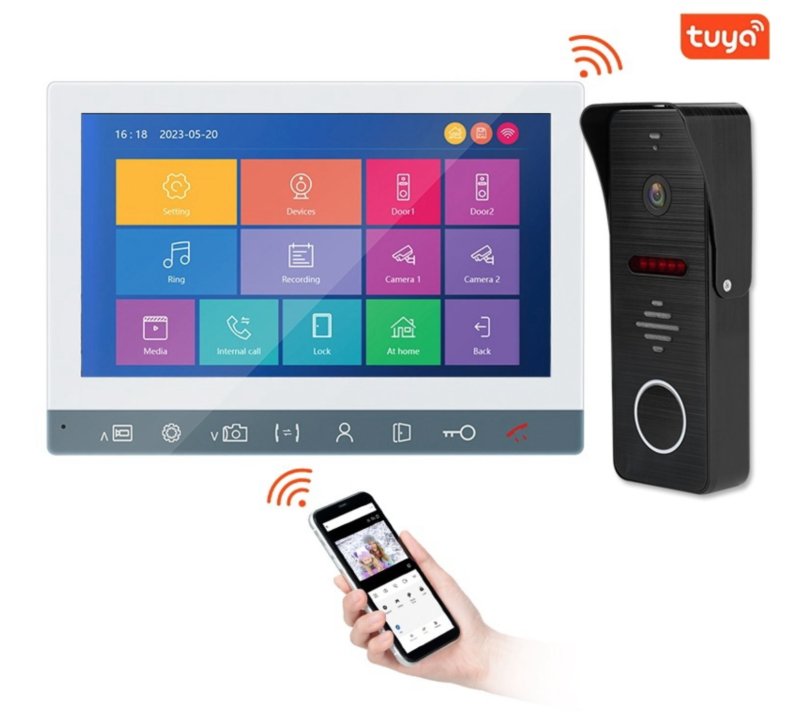 【Easy Setup and Real Time Response】We have innovatively designed this doorbell system to fit every home, villa, office, fence gate, upstairs. Doorbell direct wired to the indoor monitor, Add the monitor to your mobile Tuya App for use with your home 2.4G WiFi network. Then you can remote control intercom, surveillance, unlock from smartphone.